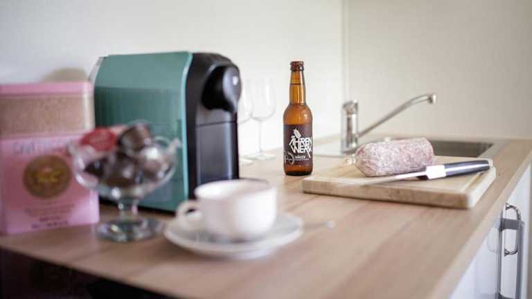 Die Ferienwohnung ist ausgestattet mit einem Schlafzimmer, einer voll ausgestatteten Küchenzeile mit Kühlschrank und Herdplatte sowie einem Badezimmer mit Dusche und Haartrockner. Handtücher und Bettwäsche werden zur Verfügung gestellt.