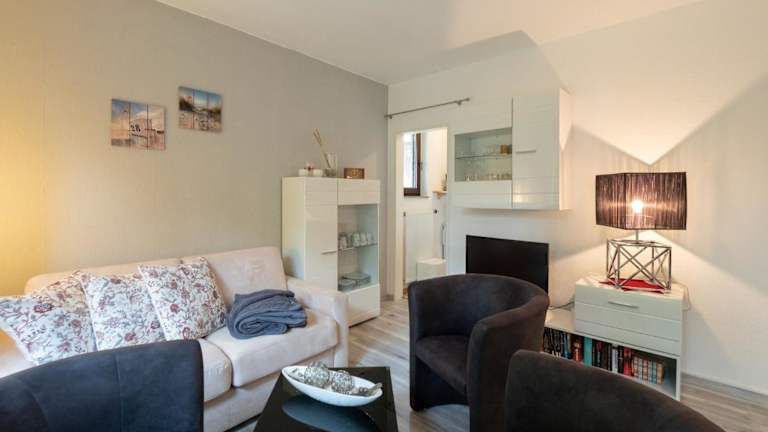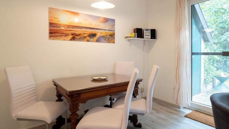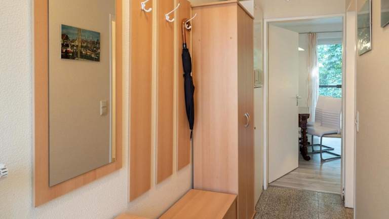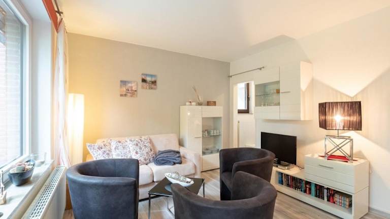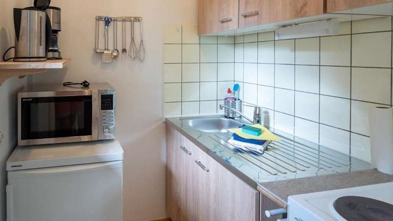 Die Ferienwohnung umfasst 1 Schlafzimmer und ist ausgestattet mit einem TV mit Kabelkanälen sowie einer voll ausgestatteten Küche. Diese beinhaltet einen Kühlschrank und einen Ofen. Handtücher und Bettwäsche werden zur Verfügung gestellt.