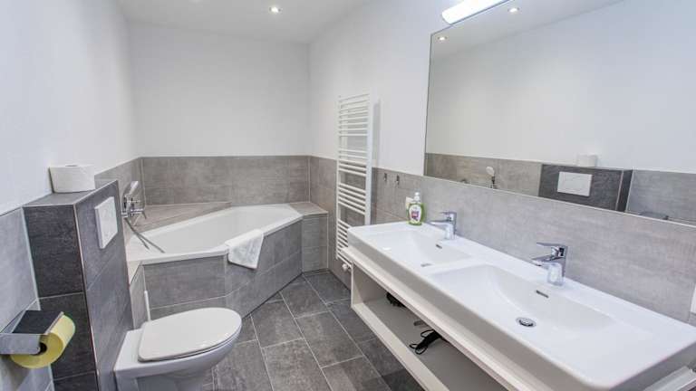 Die Ferienwohnung verfügt über 1 Schlafzimmer, ein Wohnzimmer sowie 2 Badezimmer mit einer Badewanne. Sie bietet zudem einen Flachbild-TV und eine gut ausgestattete Küche mit Kühlschrank und Geschirrspüler. Handtücher und Bettwäsche sind verfügbar.