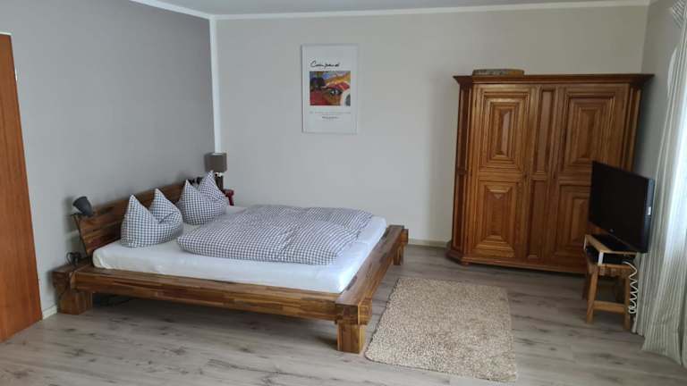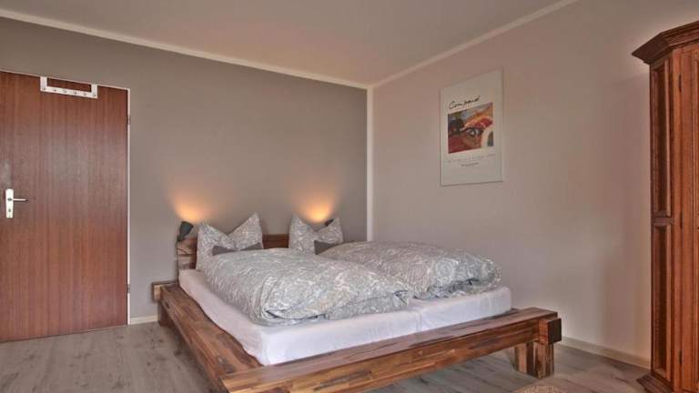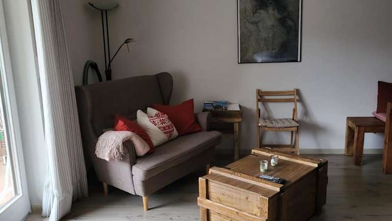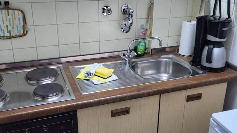 Die Ferienwohnung beinhaltet ein Schlafzimmer, eine Küche mit Kühlschrank und Geschirrspüler sowie ein Badezimmer mit Badewanne. Ein Flachbild-TV, ein Sitzbereich sowie handtücher und Bettwäsche sind ebenfalls vorhanden.