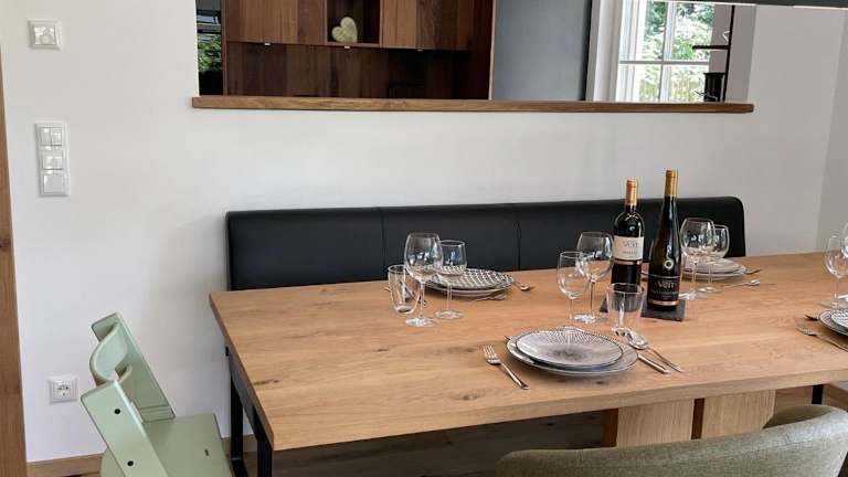 Die Ferienwohnung verfügt über zwei Schlafzimmer, ein Wohnzimmer, einen Flachbild-TV sowie eine gut ausgestattete Küche mit Kühlschrank und Geschirrspüler. Dazu gehört ein Badezimmer mit Dusche. Handtücher und Bettwäsche werden bereitgestellt.
