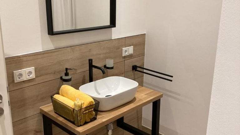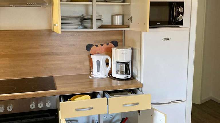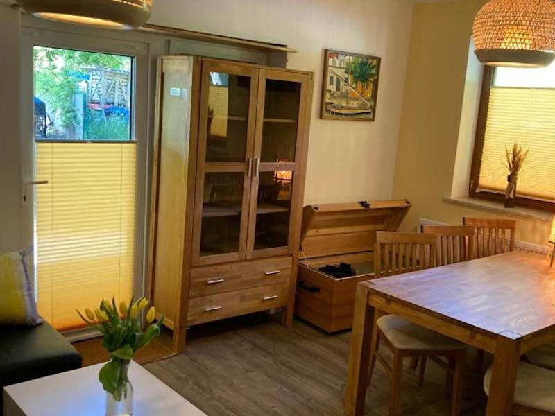 Die Ferienwohnung verfügt über drei Schlafzimmer, ein Wohnzimmer mit Flachbild-TV, eine gut ausgestattete Küche mit Kühlschrank und Geschirrspüler sowie drei Badezimmer mit Dusche. Die Terrasse bietet einen schönen Blick auf den Garten. Handtücher und Bettwäsche werden zur Verfügung gestellt.