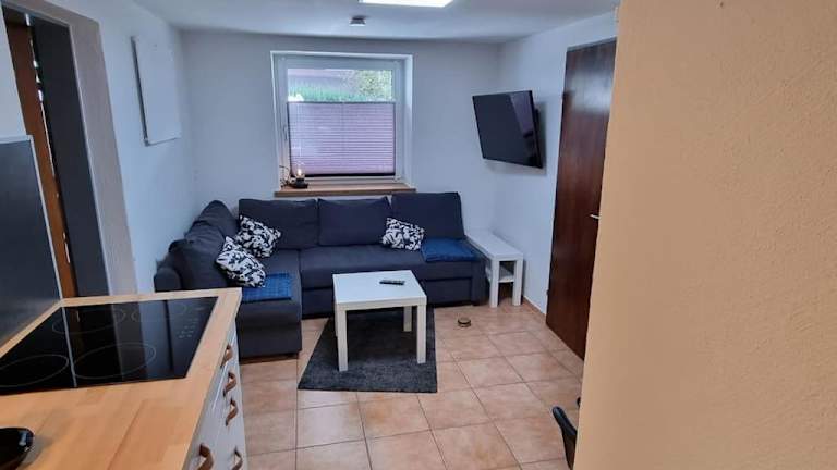 Die Ferienwohnung umfasst ein Schlafzimmer, ein Wohnzimmer und eine voll ausgestattete Küchenzeile mit Kühlschrank und Kaffeemaschine. Ein Badezimmer mit Dusche und Haartrockner steht ebenfalls zur Verfügung. Handtücher und Bettwäsche werden zur Verfügung gestellt.