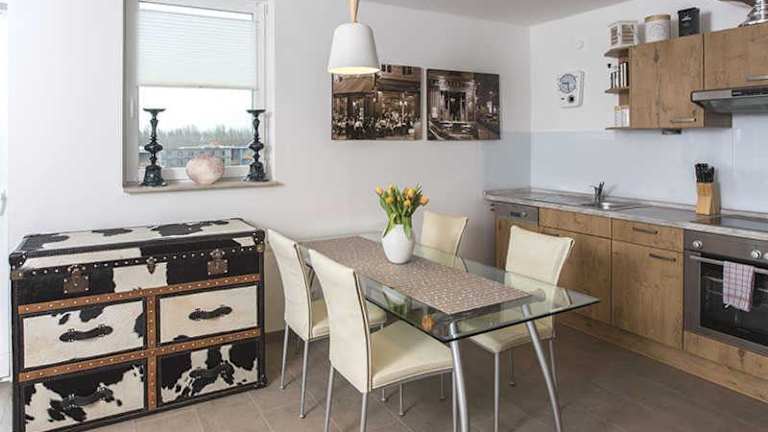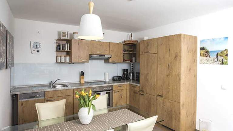 Die Ferienwohnung verfügt über 1 Schlafzimmer, einen Flachbild-TV mit Satellitenkanälen, eine gut ausgestattete Küchenzeile mit Kühlschrank und Geschirrspüler sowie 1 Badezimmer mit Dusche.