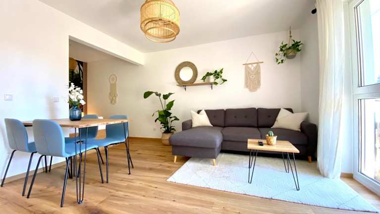 Die Ferienwohnung verfügt über einen Balkon mit Stadtblick, ein Schlafzimmer, ein Wohnzimmer sowie einen Satelliten Flachbild-TV. Die gut ausgestattete Küche bietet die Möglichkeit zur Selbstverpflegung. Zudem steht ein Badezimmer mit Dusche und Badewanne sowie die Bereitstellung von Handtüchern und Bettwäsche zur Verfügung.