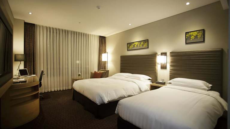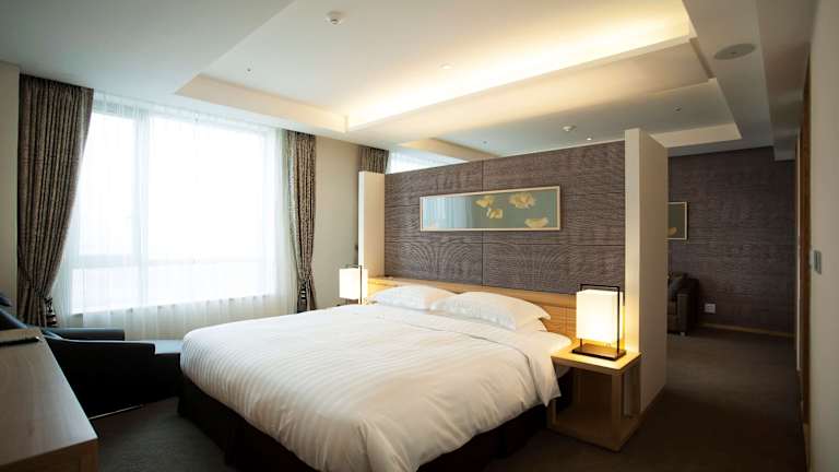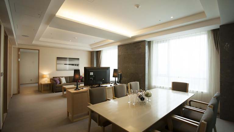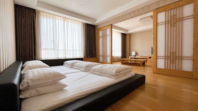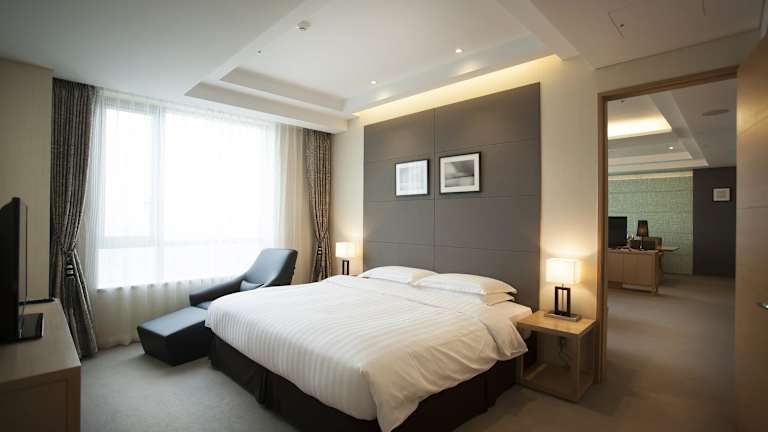 Das hoteleigene Restaurant verwöhnt die Gäste mit koreanischen Spezialitäten sowie einer Auswahl an internationalen Gerichten wie Pasta und Steak. Ein Café vor Ort bietet zusätzliche Verpflegungsmöglichkeiten.