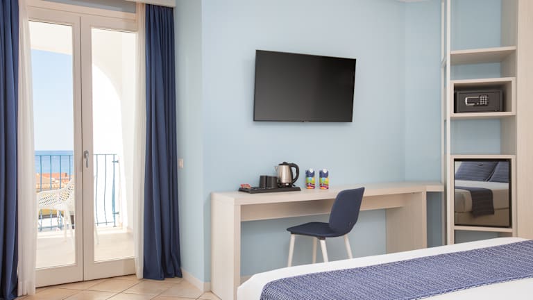 Hat jede Juniorsuite Standard separate Schlafzimmer mit Betten und nicht einem Schlafsofa? Ist der Meerblick wesentlich lauter, weil zur Straße hin?