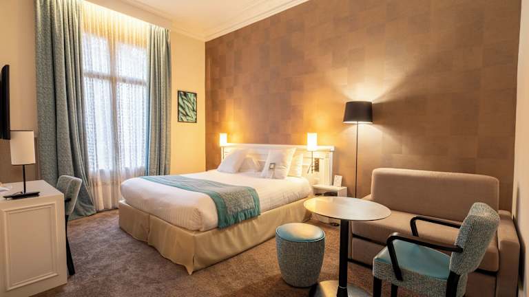 Die klimatisierten Zimmer sind mit einem Doppelbett oder einem Sofabett, einem Schreibtisch sowie einer Minibar ausgestattet. Eine Tee-/Kaffeemaschine, ein Safe, ein Fernseher und WLAN sind ebenfalls vorhanden. Badezimmer verfügen über eine Dusche und eine Badewanne, mit bereitgestellten Haartrocknern und Bademänteln. Die meisten Zimmer verfügen über einen Balkon.