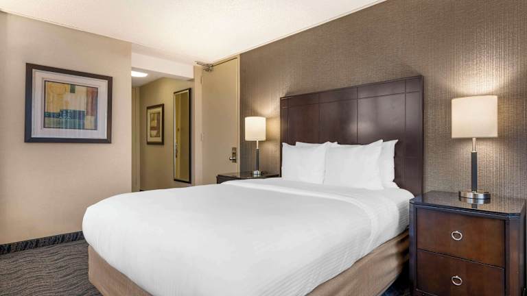 Die Zimmer sind klimatisiert und individuell beheizbar. Sie bieten ein Doppelbett, ein Queensize-Bett, ein Kingsize-Bett oder ein Sofabett sowie weitere Annehmlichkeiten wie einen Kühlschrank, eine Mikrowelle, eine Tee- und Kaffeemaschine, einen Safe und ein Bügelset. In den Badezimmern stehen Dusche, Badewanne und Haartrockner zur Verfügung. Zusätzlich gibt es rollstuhlgerechte Zimmer mit barrierefreiem Badezimmer.