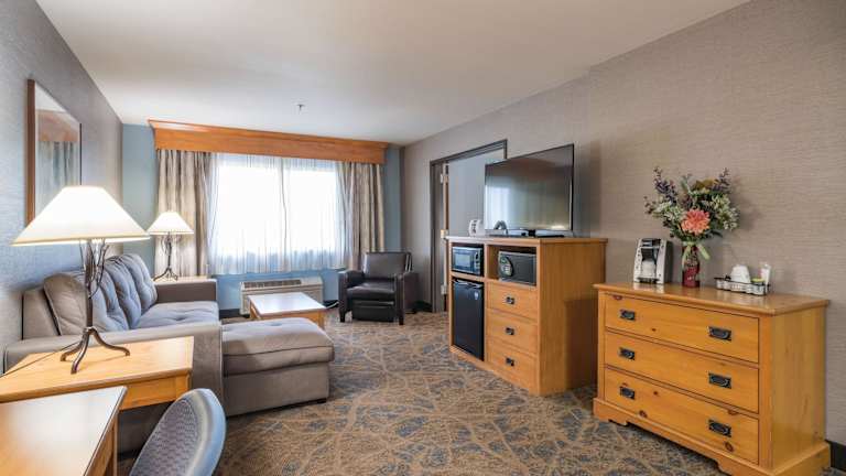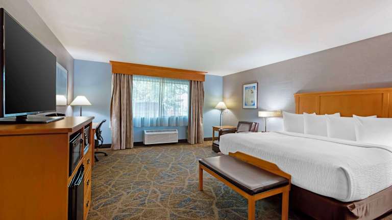 Die Zimmer im Best Western Plus GranTree Inn sind modern ausgestattet und bieten ein angenehmes Raumklima dank Klimaanlage und Heizung. Sie verfügen über ein Queensizebett und ein Sofabett sowie über einen Safe, einen Schreibtisch und zusätzliche Annehmlichkeiten wie Kühlschrank, Mikrowelle und Tee-/Kaffeemaschine. Zu den technischen Einrichtungen gehören ein 42-Zoll-Flachbild-TV, ein Telefon und kostenfreies Wifi. Die Badezimmer sind mit Dusche und Badewanne sowie Haartrockner und Kosmetikartikeln ausgestattet. Für besonderen Komfort werden auch rollstuhlgerechte Zimmer angeboten.