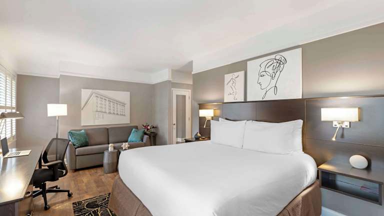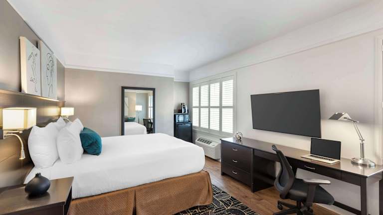 Die Zimmer des Hotels sind mit Klimaanlage und Heizung ausgestattet und bieten Teppichböden sowie Doppel- oder Kingsize-Betten. Zudem verfügen die Unterkünfte über Safe, Schreibtisch, Minikühlschrank, Tee-/Kaffeemaschine und ein Bügelset. Die Zimmer sind mit einem Fernseher (42-Zoll-Flachbild), Radio, DVD-Player, Wecker und kostenfreiem Wifi ausgestattet. In den Badezimmern gibt es eine Dusche, Badewanne oder Whirlpool sowie kostenlose Kosmetikartikel und einen Haartrockner. Es sind rollstuhlgerechte Zimmer sowie Familienzimmer für Gäste mit Kindern buchbar.