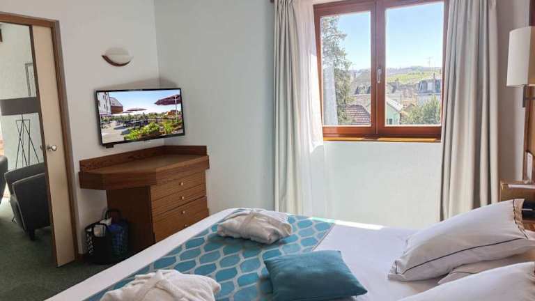 Das Best Western Hotel Le Schoenenbourg bietet eine umweltfreundliche Unterkunft mit 58 Zimmern. Die Zimmer sind in neutralen Farbtönen gestaltet und bieten Annehmlichkeiten wie Klimaanlage, kostenloses WLAN und Flachbild-Sat-TV. Zur Einrichtung gehören ein Restaurant, ein Café, eine Bar und ein Frühstückssaal. Zu den zusätzlichen Einrichtungen zählen ein Gartenbereich, eine Sonnenterrasse sowie ein TV-Raum. Gäste haben Zugang zu einem kostenfreien Wellnessbereich, der einen Innenpool, Aussenschwimmbecken mit beheiztem Wasser, Saunen, ein Dampfbad und eine Massagepraxis umfasst. Die Unterbringung stellt behindertengerechte Zimmer zur Verfügung.