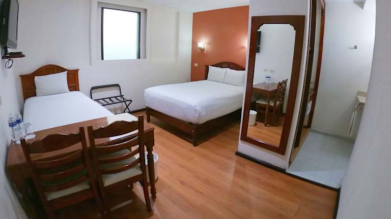 Die klimatisierten Zimmer sind mit einem Doppelbett, Schreibtisch, Safe, Flachbild-TV und eigenem Badezimmer ausgestattet, das über eine Dusche sowie eine Badewanne verfügt. Zusätzlich sind eine Tee-/Kaffeemaschine und ein Bügelset vorhanden. WLAN ist in den Zimmern ohne Gebühr verfügbar. Es werden Familien- und Nichtraucherzimmer angeboten.