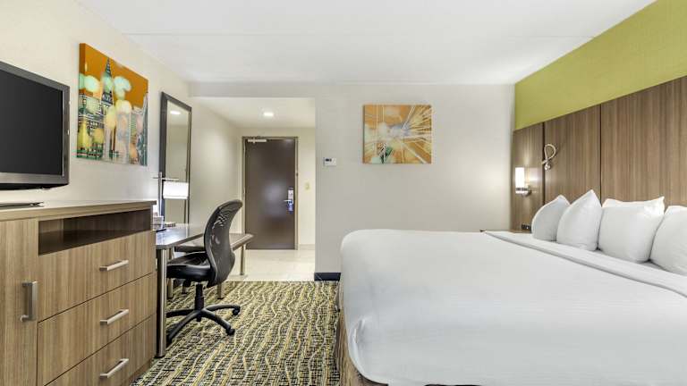 Die Zimmer sind mit einem King Size Bett ausgestattet und verfügen über eine individuell regelbare Klimaanlage, einen Schreibtisch, Bügeleisen, Bügelbrett, Kühlschrank, Mikrowelle und einen Kaffee-/Teezubereiter. Die Zimmer beinhalten ebenfalls ein Telefon, kostenfreies WLAN, einen Flatscreen-Fernseher mit Sat- und Kabel-TV, ein Radio sowie ein eigenes Bad mit Badewanne oder Dusche, WC und Föhn.