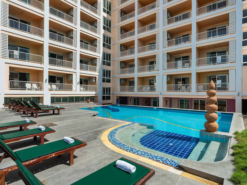 Das Hotel liegt in der Naklua-Strasse in Pattaya, nur etwa 300 Meter vom Strand entfernt. Das Stadtzentrum erreichen die Gäste nach 5 Kilometer, während der Golfplatz ebenfalls in der Nähe ist.