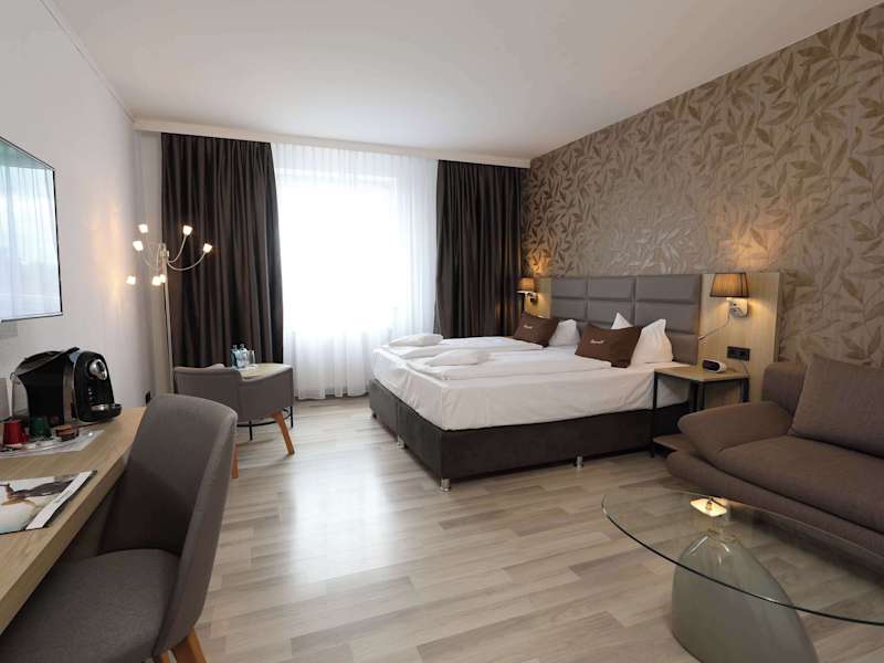 Die Zimmer sind geräumig und geschmackvoll eingerichtet. Jedes Zimmer ist mit einem Doppelbett, Safe, Minibar, Schreibtisch, Tee-/Kaffeekocher, Bügelset und Hosenpresse ausgestattet. Ein TV-Gerät und kostenloses WLAN sorgen für zusätzlichen Komfort. Die Badezimmer sind mit einer Dusche und Haartrockner ausgestattet. Das Hotel bietet Nichtraucherzimmer und auch rollstuhlgerechte Zimmer an.