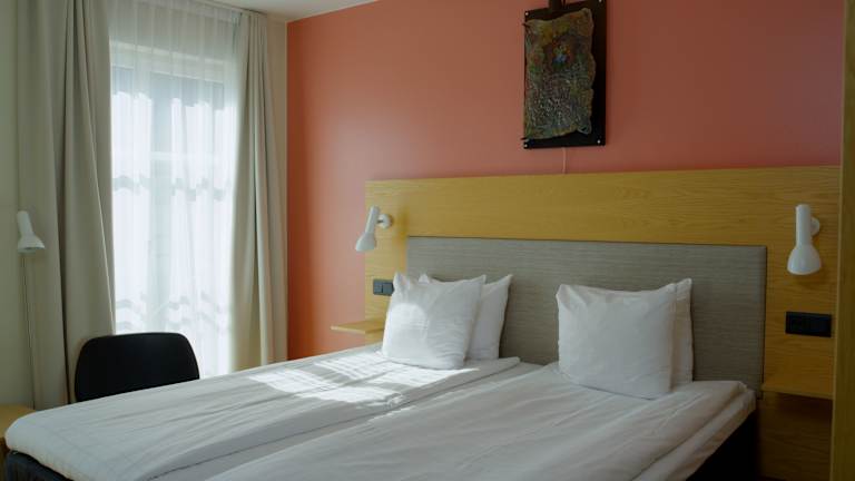 Die Zimmer sind mit einer Heizung, einem Doppelbett oder einem Sofabett ausgestattet. Zu den weiteren Annehmlichkeiten zählen ein Safe, eine Minibar, ein Schreibtisch, ein Telefon und ein TV-Gerät. Die Badezimmer verfügen über eine Dusche und eine Badewanne und sind mit einem Haartrockner ausgestattet. Für Familien und Nichtraucher stehen entsprechende Zimmer zur Verfügung.