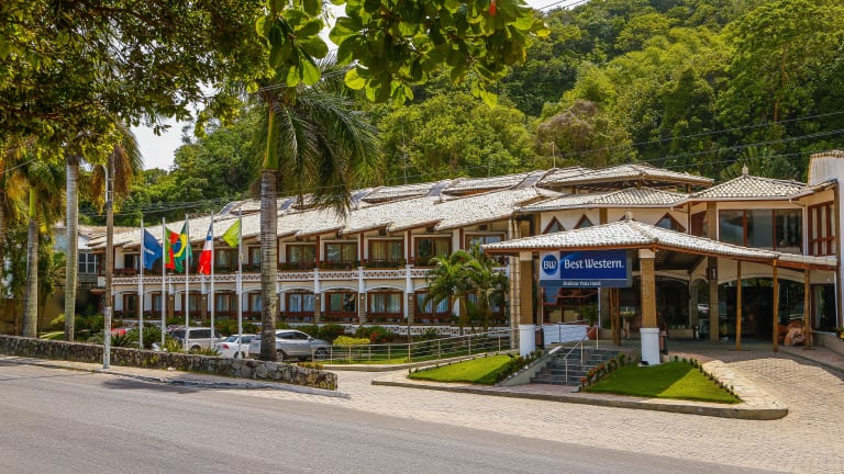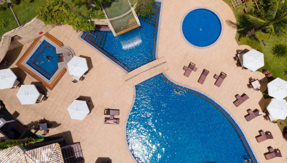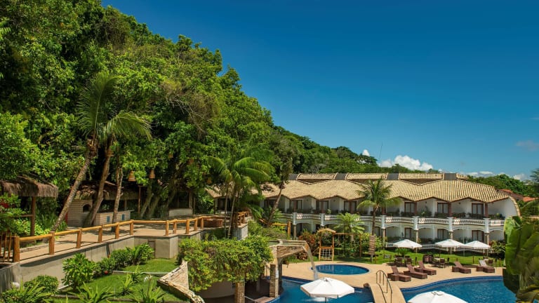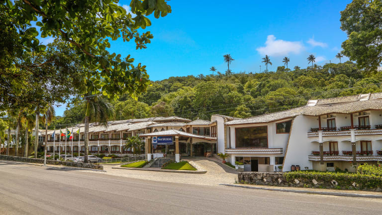 Das Hotel liegt direkt am Strand in zentraler Lage in Porto Seguro, umgeben von tropischen Bäumen und nur 10 Gehminuten von der Innenstadt entfernt.