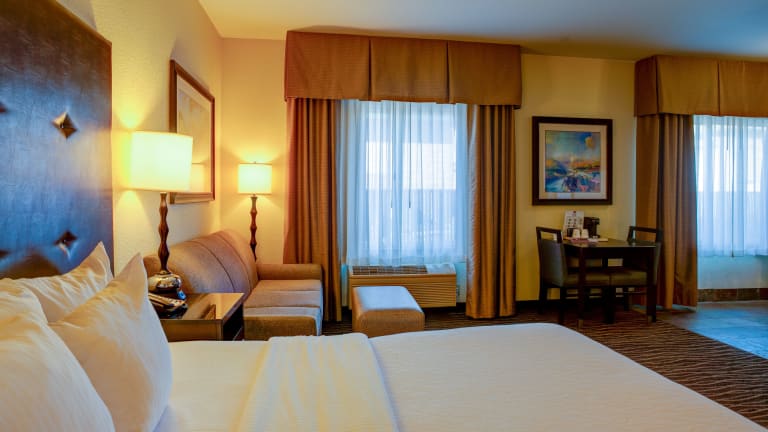 Die modernen Zimmer sind mit Kühlschrank, Mikrowelle, Tee-/Kaffeemaschine und Kabel-TV ausgestattet. WLAN ist kostenlos verfügbar. Einige Suiten bieten zudem eine Küchenzeile. In den Badezimmern stehen eine Dusche, eine Badewanne und eine Whirlwanne zur Verfügung, ebenso wie Haartrockner und Bademäntel. Das Hotel bietet auch rollstuhlgerechte Zimmer.