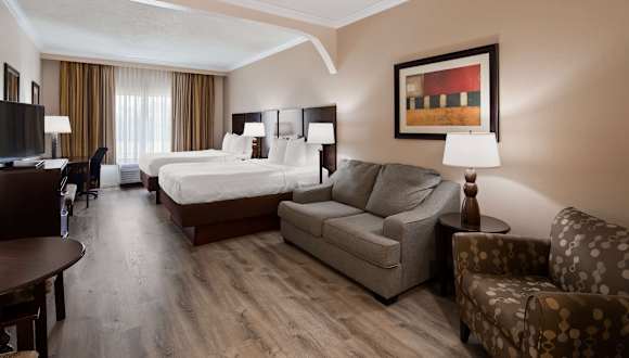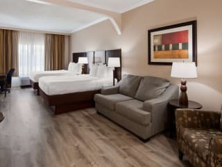 Die modernen Suiten im Best Western Plus Ambassador Suites bieten geräumige Unterkünfte mit Annehmlichkeiten wie einer Mikrowelle, einem kleinen Kühlschrank und Kaffeezubehör. Jede Suite verfügt über einen separaten Sitzbereich und kostenfreien WLAN-Zugang. Die Zimmer sind komfortabel und bieten alles, was Gäste für einen angenehmen Aufenthalt benötigen.