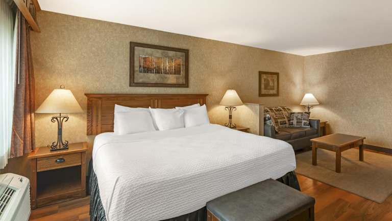 Die Zimmer sind klimatisiert und mit Teppichböden ausgestattet. Jedes Zimmer verfügt über ein Queensizebett und ein Sofabett, mit der Möglichkeit zur Anforderung von Zustellbetten. Die Ausstattung der Zimmer umfasst einen Schreibtisch, Kühlschrank, Mikrowelle, Kaffee-/Teemaschine, sowie ein Bügelset und Hosenpresse. Zur technischen Ausrüstung gehören ein Telefon, ein TV-Gerät und ein Radio, wobei WiFi in den Zimmern ebenfalls kostenfrei verfügbar ist. Das Badezimmer verfügt über eine Dusche und eine Badewanne, ausgestattet mit Haartrockner und Kosmetikartikeln. Das Hotel bietet auch rollstuhlgerechte Zimmer an.