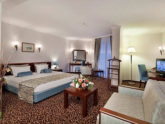Das Best Western Plus Hotel Khan bietet eine Unterkunft auf 13 Etagen mit insgesamt 135 Zimmern, darunter 108 Doppelzimmer, 9 Suiten und 18 Junior-Suiten. Die Einrichtung umfasst einen Empfangsbereich mit einem deutsch- und englischsprachigen Personal, WLAN (ohne Gebühr), einen TV-Raum, einen Spielraum und eine Bibliothek. Für die Bequemlichkeit der Gäste stehen ein Gepäckaufbewahrungsraum, ein Safe und eine Vielzahl von weiteren Dienstleistungen wie ein Babysitterservice und medizinische Betreuung zur Verfügung.
