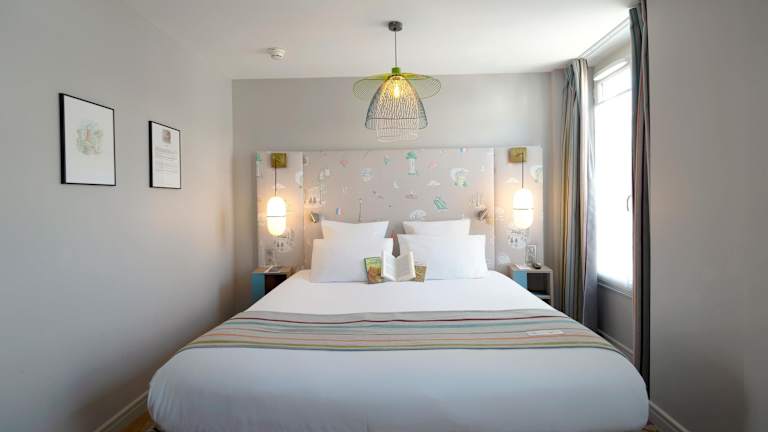 Die Zimmer des Hôtel Littéraire Marcel Aymé haben nicht nur eine Nummer, sondern tragen auch den Namen eines Romans, einer Kurzgeschichte oder eines engen Freundes von Marcel Aymé, wie La Jument verte, Le Passe-muraille und Jean Anouilh. Sie sind mit einem Aquarell von Jean Aubertin personalisiert, die jeweils eigens kreiert wurden, zusammen mit einem Text und Zitaten von Marcel Aymé, um Lust auf mehr zu machen. Einige Fotos der besten Fotografen der damaligen Zeit wie Izis lassen Sie in die Atmosphäre von Montmartre zu dieser Zeit eintauchen.