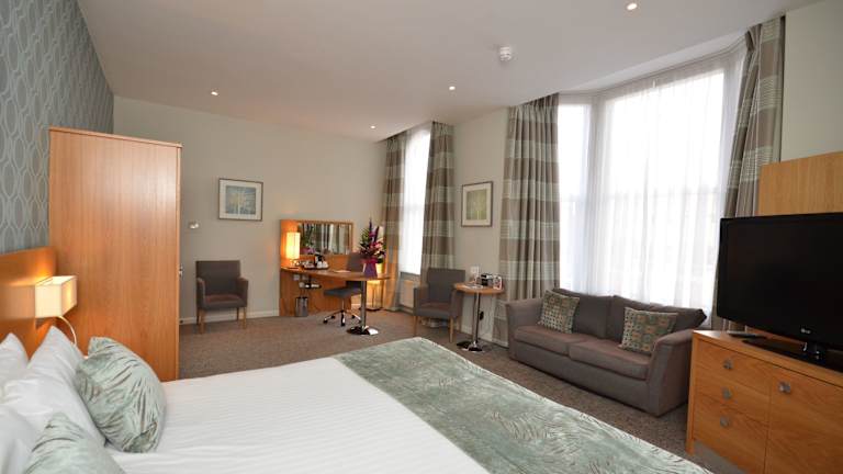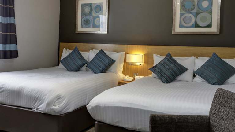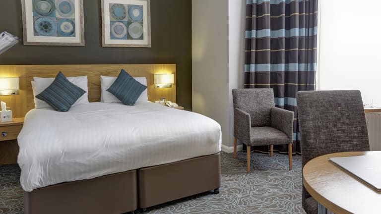 Die Zimmer verfügen über ein bequemes Hypnos Balmoral Boxspringbett mit einer Matratzenauflage. Zur Ausstattung gehören eine Klimaanlage, Heizung, ein Safe, Tee- und Kaffeezubereitungsmöglichkeiten sowie ein TV-Gerät mit Satellitenempfang. Auch ein Bügelset ist verfügbar. Die Badezimmer sind mit einer Dusche, Haartrockner und Kosmetikartikeln ausgestattet. Die Zimmer sind teppichbelegt und es sind barrierefreie Badezimmer buchbar.