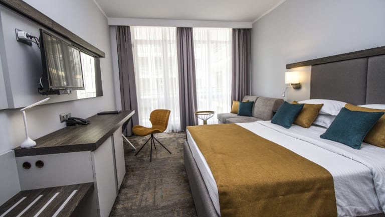 Das moderne Design mit natürlichen Farben und natürlichem Licht ist die perfekte Kombination aus Eleganz und komfortablem Ambiente in verschiedenen Zimmertypen, z. B .: Komfort Doppelzimmer, Deluxe Zimmer, Executive Suite, Familiensuite, alle eingerichtet und ausgestattet mit ● Kingsize-Bett (2 x 2 m) ● Vollständig ausgestattete Minibar ● Spiegel ● Toilettenartikel von Geneva Guild (Italien) ● Rainshower von Ponsi 200mm (Italien) ● LED-Fernseher, 32 ″ mit mehr als 50 internationalen Kanälen ● Highspeed-WLAN (kostenlos) ● Kostenloser Safe ● Direkte Telefonleitung ● Zentrale Klimaanlage ● Haartrockner ● Wasserkocher ● Balkon