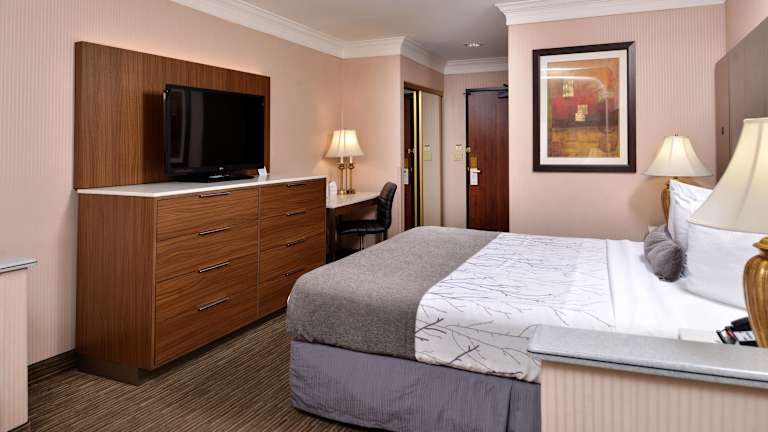 Die klimatisierten Zimmer sind mit einem Kingsizebett, einem Sofabett sowie weiteren Annehmlichkeiten wie Kühlschrank, Mikrowelle und einer Tee-/Kaffeemaschine ausgestattet. Alle Zimmer bieten kostenloses WiFi, Kabel-TV, einen Schreibtisch sowie ein Badezimmer mit Dusche und Haartrockner. Barrierefreie Zimmer mit rollstuhlgerechten Bädern sind ebenfalls verfügbar.