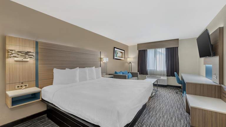 Die Zimmer des Hotels sind komfortabel ausgestattet mit einem Flachbild-TV, einem Sofa-Bett, einem Schreibtisch sowie einem Safe (kostenpflichtig). Ein Minikühlschrank, eine Mikrowelle und eine Tee-/Kaffeemaschine sind vorhanden. Die Badezimmer sind mit einem Haartrockner ausgestattet. Es gibt rollstuhlgerechte Zimmer und Nichtraucherzimmer.