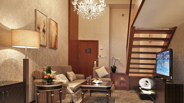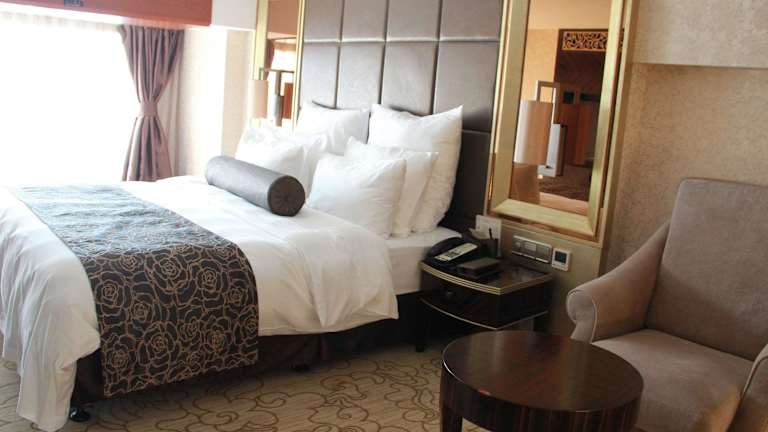 Die Zimmer sind modern und geräumig, eingerichtet in angenehmen neutralen Farbtönen. Die Ausstattung umfasst Klimaanlage, Heizung, einen Balkon, einen Safe, eine Minibar, eine Tee-/Kaffeemaschine sowie kostenfreies Wifi. Die Badezimmer sind mit einer Dusche und Bidet ausgestattet und verfügen über Bademäntel sowie kostenfreie Pflegeprodukte. Rollstuhlgerechte Zimmer sind ebenfalls verfügbar.