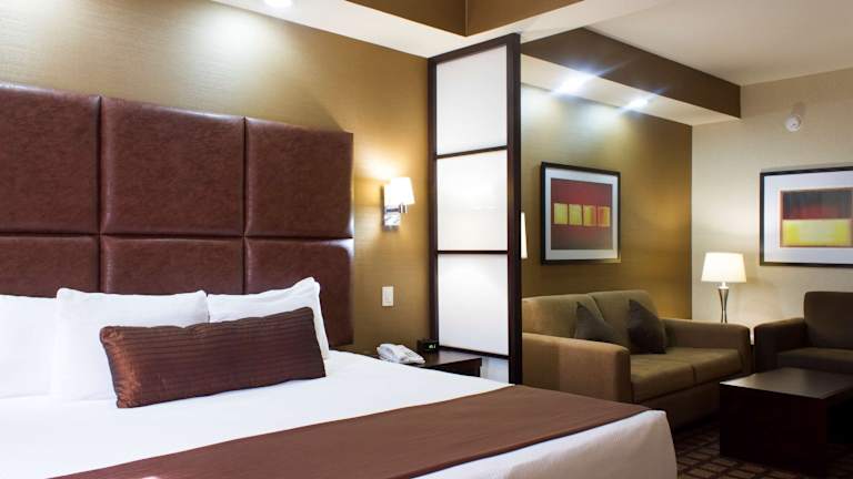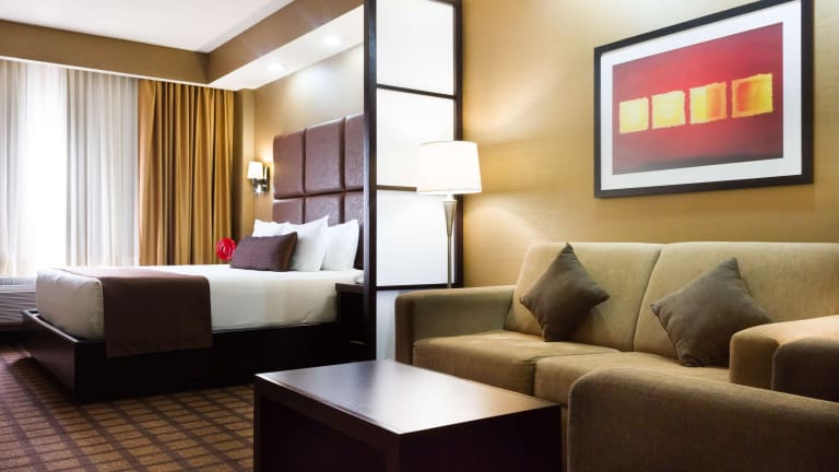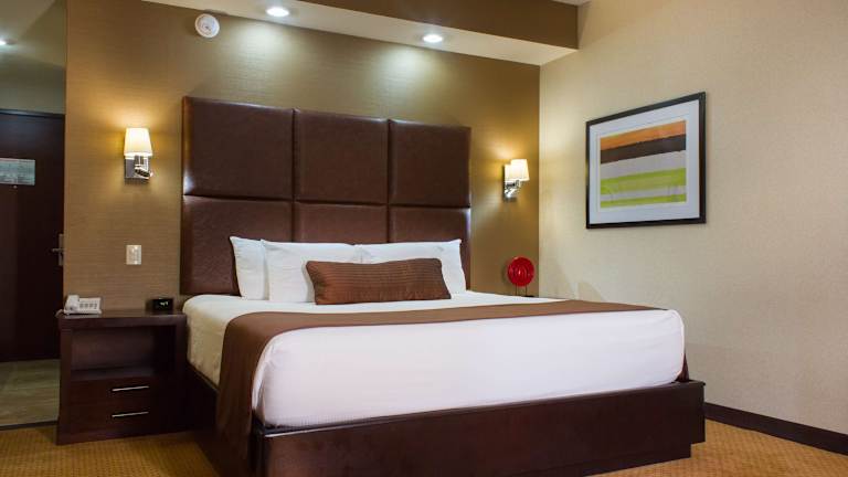 Die Zimmer sind ausgestattet mit einem Queensizebett und einem Sofabett, Klimaanlage und Heizung, sowie einer Minibar, Mikrowelle, Kühlschrank und Tee-/Kaffeekocher. Zusätzlich stehen ein Safe, ein Schreibtisch, ein Haartrockner und Pflegeprodukte bereit. Jedes Zimmer bietet Möglichkeiten für Nichtraucher und Familien, sowie ein kostenfreies WLAN.