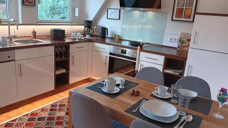 Die Ferienwohnung verfügt über 2 Schlafzimmer, einen Flachbild-TV mit Satellitenkanälen, eine gut ausgestattete Küche mit Kühlschrank und Geschirrspüler sowie 1 Badezimmer mit Dusche. Handtücher und Bettwäsche stehen zur Verfügung.