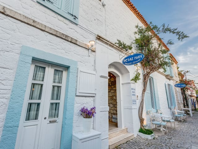 Das Beyaz Han Hotel befindet sich in Alacati Mah, in der Nähe des Alaçatı Çarşı und der Pazaryeri-Moschee. Das Hotel liegt günstig in der Nähe des Stadtzentrums von Çeşme und ist nur wenige Gehminuten von verschiedenen Sehenswürdigkeiten entfernt, darunter der Strand von Ilıca und das Oasis Aquapark.