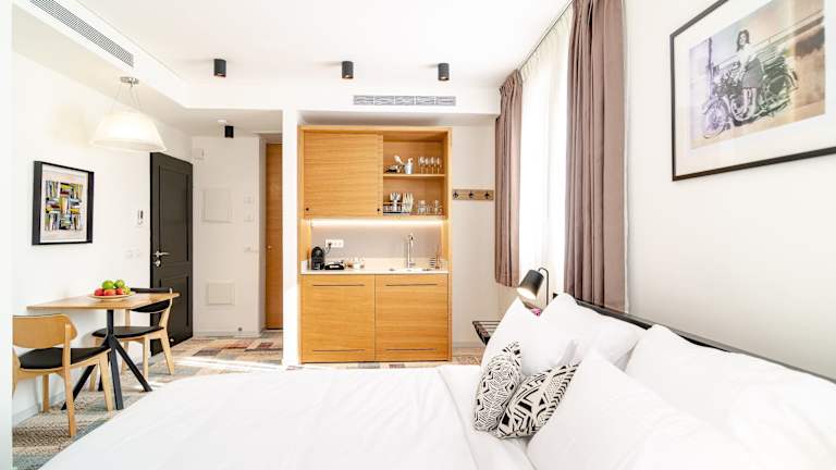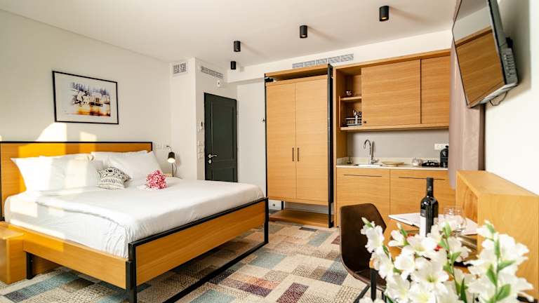 Die Zimmer im Biazi Hotel sind klimatisiert und ausgestattet mit einem Sitzbereich, einem Flachbild-TV mit Kabelkanälen, einer Küchenzeile, einem Essbereich und einem eigenen Badezimmer mit Dusche sowie kostenlosen Pflegeprodukten und einem Haartrockner. Einige Zimmer verfügen über einen Balkon oder bieten Gartenblick. Zudem sind die Zimmer mit Bettwäsche und Handtüchern versehen.