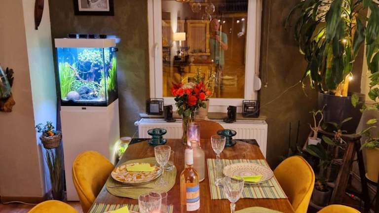 Bienvenue Chez Nous bietet Übernachtungsmöglichkeiten in einem familiären Ambiente. Die Unterkunft verfügt über einen Garten sowie eine eindrückliche Terrasse und ein Restaurant, wo die Gäste die Atmosphäre der Gemeinschaft geniessen können. Zudem bietet sie Grillmöglichkeiten und eine gemeinschaftliche Lounge für ein geselliges Beisammensein. Die Verwendung von gegen das Coronavirus wirksamen Reinigungsmitteln sorgt für ein hohes Mass an Hygiene.
