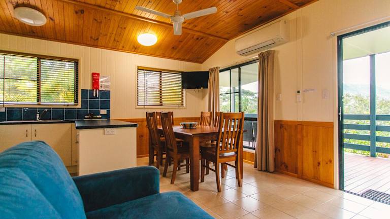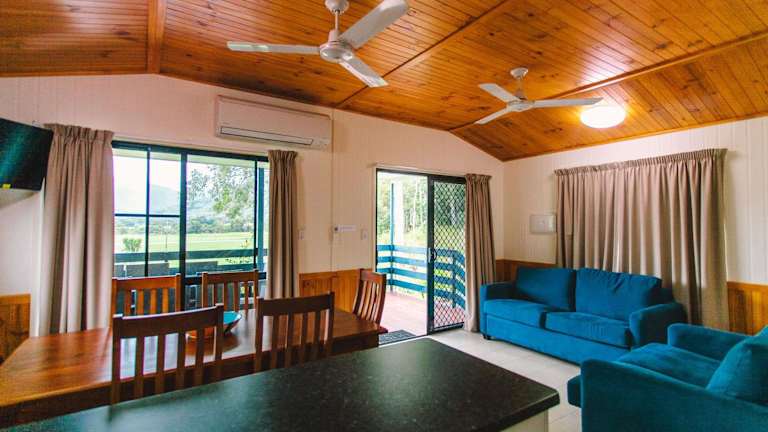Alle Unterkünfte im Big4 Port Douglas, Glengarry Holiday Park verfügen über eine Terrasse oder einen Balkon, auf denen Sie die tropische Umgebung genießen können. Jede Unterkunft ist klimatisiert und bietet eine voll ausgestattete Küche oder Küchenzeile mit Kühlschrank sowie Kaffee- und Teezubehör. Es gibt auch einen Essbereich und einen Wohnbereich mit einem Flachbild-TV.