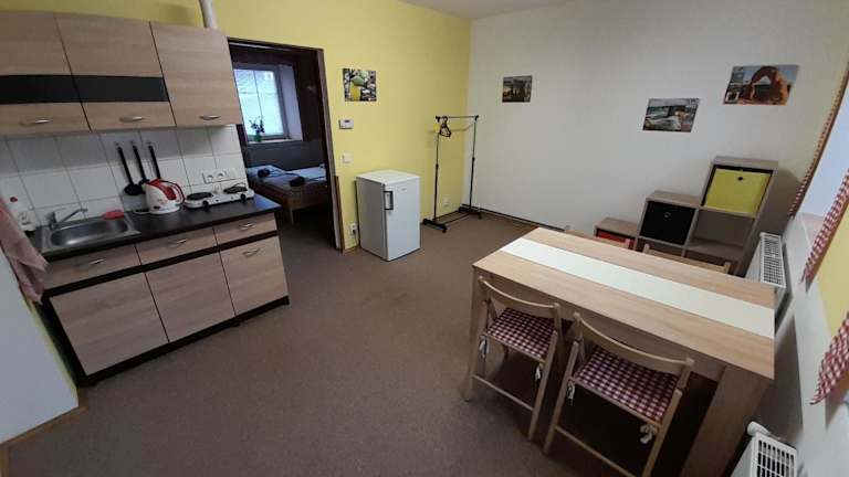 Die Unterkunft liegt in Krásná Lípa in der Region Ústí. In der Umgebung finden sich zahlreiche Möglichkeiten zur Erkundung der Natur, darunter Wander- und Velofahrwege. Zittau/Görlitz mit der Hochschule ist 26 km entfernt, und bedeutende Sehenswürdigkeiten wie die Festung Königstein und der Nationalpark Sächsische Schweiz sind gut erreichbar.
