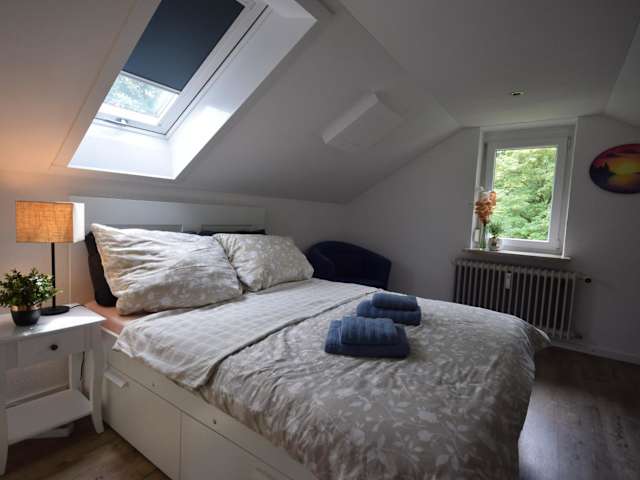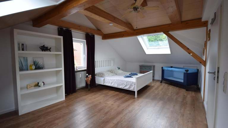 Die Ferienwohnung Bimax hat eine neu renovierte, gemütliche Dachgeschosslage mit vier Zimmern. Sie bietet eine Vielzahl von Annehmlichkeiten, darunter eine Terrasse und einen Garten, die zur Erholung einladen. Die Unterkunft ist familienfreundlich und wird von einem privaten Gastgeber geführt, wobei das Mindestalter für den Check-in 18 Jahre beträgt.