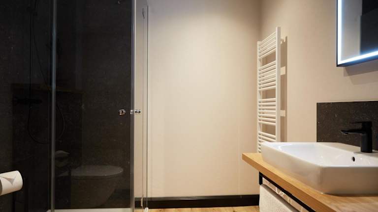 Die Ferienwohnung umfasst ein Schlafzimmer, ein Badezimmer mit Dusche, eine gut ausgestattete Küche mit Kühlschrank und Geschirrspüler sowie einen TV mit Satellitenkanälen. Handtücher und Bettwäsche werden gestellt.