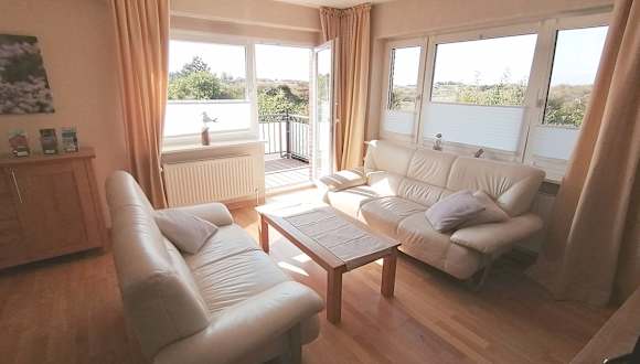 Mehr Ruhe ist in St. Peter-Ording nicht zu bekommen: Direkt vor dem Fenster erhebt sich die erste Düne, danach kommt nur noch Natur. Das Bio-Apartment Strandflieder hat einen Balkon mit wunderschönem Ausblick bis zum Horizont über Dünen und Meer. Hier können Sie entspannt Urlaub machen, hier können Sie sich richtig wohlfühlen. Zwei schöne Schlafzimmer, eines mit Doppelbett und eines mit variablen Einzelbetten. Zwei Bäder direkt neben den Schlafzimmern, eines davon als Raumbad mit zwei Waschbecken und Wanne. Ein großes Wohnzimmer mit Essbereich und einer komplett ausgestatteten, kompakten Küchenzeile. Küchendetails: 4-fach-Ceranfeld, Backofen, große Kühl-Gefrierkombination, Spülmaschine, Kaffeemaschine, Toaster, Wasserkocher. Flachbild-TV, Stereoanlage mit DVD-Player. Haustiere erlaubt (pro Haustier nur einmalig 18,00 €) Lage: im Obergeschoss, direkt an den Dünen am Ende der sehr ruhigen Sackgasse Dünenweg, Nr. 13, St. Peter-Ording, Ortsteil Dorf. (Zum Bäcker und Supermarkt sind es nur rund 300m.)