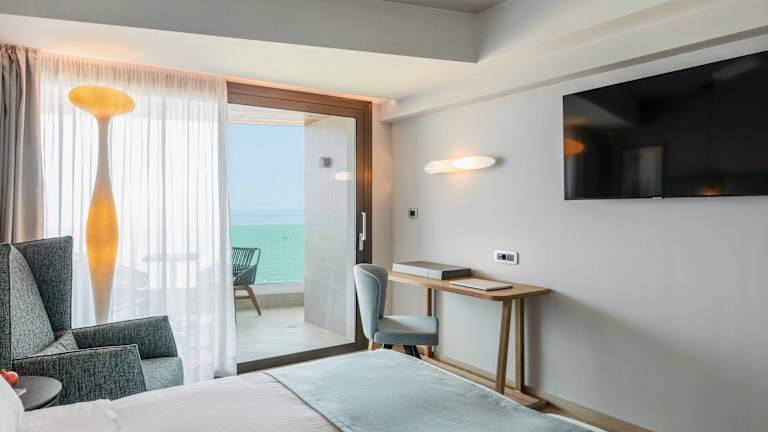 Die 20 Suiten im BIO BEACH Boutique Hotel - Adults Only sind modern und komfortabel eingerichtet. Jede Suite verfügt über einen eigenen Balkon mit Meerblick. Zur Ausstattung gehören Klimaanlage, Sat-TV, Safe und ein eigenes Bad.