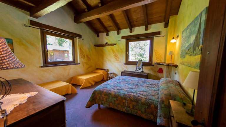Die Zimmer der Bio Fattoria Cà d'Pignat sind teilweise mit einem Balkon oder einer Veranda ausgestattet, von wo Gäste den Blick auf den Fluss oder den Garten geniessen können. Über kostenloses Wifi kann jederzeit darauf zugegriffen werden.