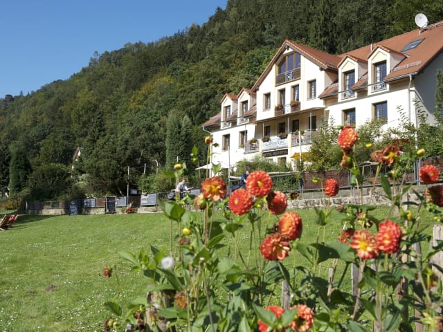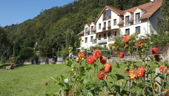 Zentral gelegen an den Hauptzugängen zu den Nationalparks Sächsische Schweiz und Böhmische Schweiz ist unser Hotel ein Ort zum naturnahen Entspannen. Zu Fuß in wenigen Schritten zu den stolzen Tafelbergen und schroffen Felsen ist direkt ab Hotel auf mindestens zehn verschiedenen Tages-Routen möglich, ohne einen Weg doppelt zu gehen. Bestaunen Sie die skurrilen Sandsteinformen und weiten Ausblicke. Schluchten, Klammen und kristallklare Bäche machen das Urlaubsgebiet zu einem großartigen Wandereldorado - hoch aufragende Gipfel zu einem Kletterparadies (Die Sächsische Schweiz ist die Wiege des Freeclimbings). Ihr Hotel liegt direkt am Elberadweg, dem schönsten Flussradweg Deutschlands. Die aufregendste Etappe liegt hier an der Oberelbe. Er führt auf beiden Seiten des Flusses gemütlich entlang. Alle paar Kilometer können Sie mit einer Fähre das Ufer wechseln. Oder fahren Sie auf schönen Rundkursen seitwärts der Elbe durch den Nationalpark. Fahrräder und E-Bikes können Sie selbstverständlich bei uns leihen. Wählen Sie aus unseren vielen Aktivangeboten! Ein ganz besonderes Highlight ist die Paddeltour mit der Strömung durch den einzigartigen Elbe-Canyon. Nutzen Sie unser Pauschalangebot und freuen Sie sich auf eine spannende Tour. Für Golfer wartet ein Geheimtipp, nur 4 Km vom Hotel entfernt gibt es einen 9-Loch-Platz direkt am Nationalpark.