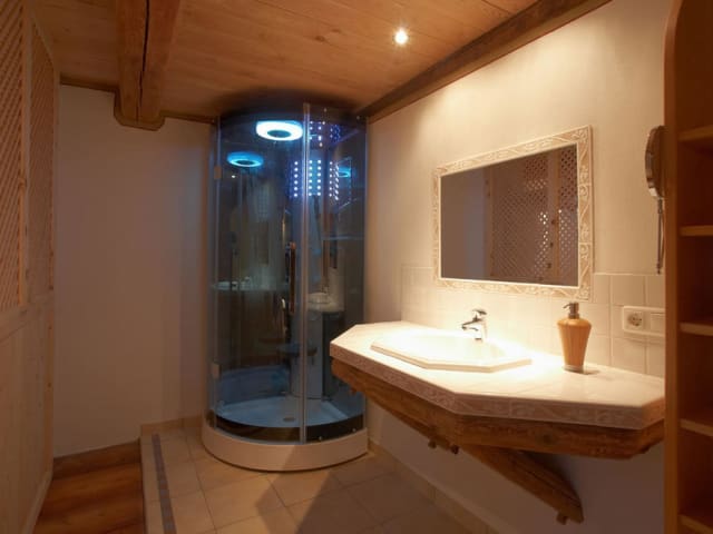 Der Troatkostn (Getreidespeicher) beim Fritzn wurde 1726 erbaut. Mit viel Liebe zum Detail ist es gelungen ihn zu einem modernen Wohnobjekt umzugestalten und alte Bausubstanz mit den Vornehmlichkeiten heutiger Ansprüche zu kombinieren und zu erhalten. Druch die Kombination von Steinmauerwerk, Naturlehmputz und Niedertemperaturheizung entsteht ein äusserst angenehmes Wohnklima. Die Einrichtung wurde zum grössten Teil wieder unter Verwendung von Altholz hergestellt. Durch Anschluss eines Wintergartens und einer Giebelverglasung samt Glasboden wurden auch moderne Bauelemente verwendet. Das Holz unserer gemütlich eingerichteten Komfortzimmer wurde nach alter Überlieferung geschlägert, getrocknet, mehrjährig gelagert und von einem Handwerker mit viel Gefühl für Details verarbeitet. Beim Betreten des hellen Lärchenzimmers spürt man bereits Geborgenheit und der Duft des Holzes stimuliert die Sinne. Das eher dunkle Altholzzimmer strahlt eine harmonische Verbindung zwischen Stärke und Wärme aus.