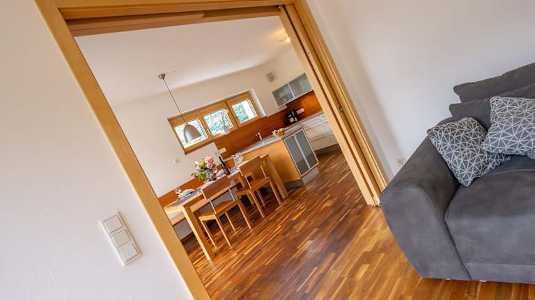 Die Ferienwohnung umfasst zwei Schlafzimmer, ein Wohnzimmer und zwei Badezimmer, davon eines mit einem Bidet. Eine gut ausgestattete Küche mit Kühlschrank und Geschirrspüler sorgt für die Bequemlichkeit der Gäste. Handtücher und Bettwäsche werden zur Verfügung gestellt.