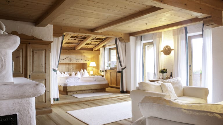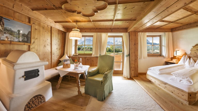 171 unterschiedliche Zimmer und Suiten: großteils mit Kaiserblick, offenem Kamin, eigener Sauna oder Dachterrasse Grundausstattung: • Möbel aus Zirben-Holz, Holzböden aus Eichen- und Lerchenholz, Teppiche aus reiner Schafwolle, Handtücher und Bettwäsche aus reiner Baumwolle und feinstem Leinen • Telefon • WLAN (kostenlos) • Safe • Bad/Dusche und WC • Fön • Flatscreen-TV inkl. Infotainment-System • Schreibtisch • Sitzecke • Minibar • Bademantel, Badeslipper, Badetasche • uvm.