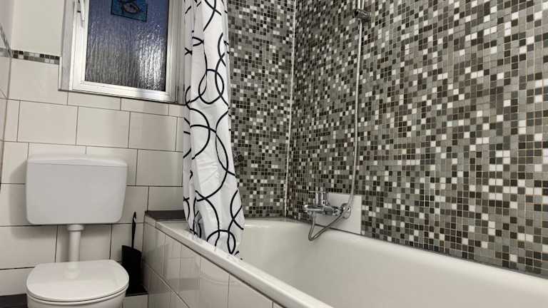 Die Ferienwohnung umfasst zwei Schlafzimmer, eine voll ausgestattete Küche mit Kühlschrank und Ofen sowie ein Badezimmer mit Dusche und Badewanne. Handtücher und Bettwäsche sind ebenfalls vorhanden. Die Zimmer sind schallisoliert und die Unterkunft bietet Heizung sowie einen Aufzug.
