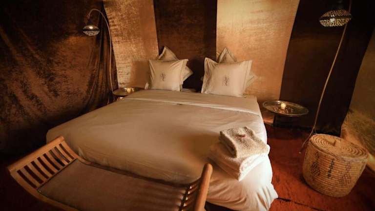 Die Unterkunft Bivouac de Luxe Le Pacha befindet sich in M’hamid El Ghizlane und bietet einen malerischen Blick auf die Berge. Sie ist über eine ungepflasterte Strasse erreichbar, was für einige Fahrzeuge möglicherweise eine Herausforderung darstellt. Der nächstgelegene Flughafen ist der Flughafen Zagora, der 140 km entfernt ist.